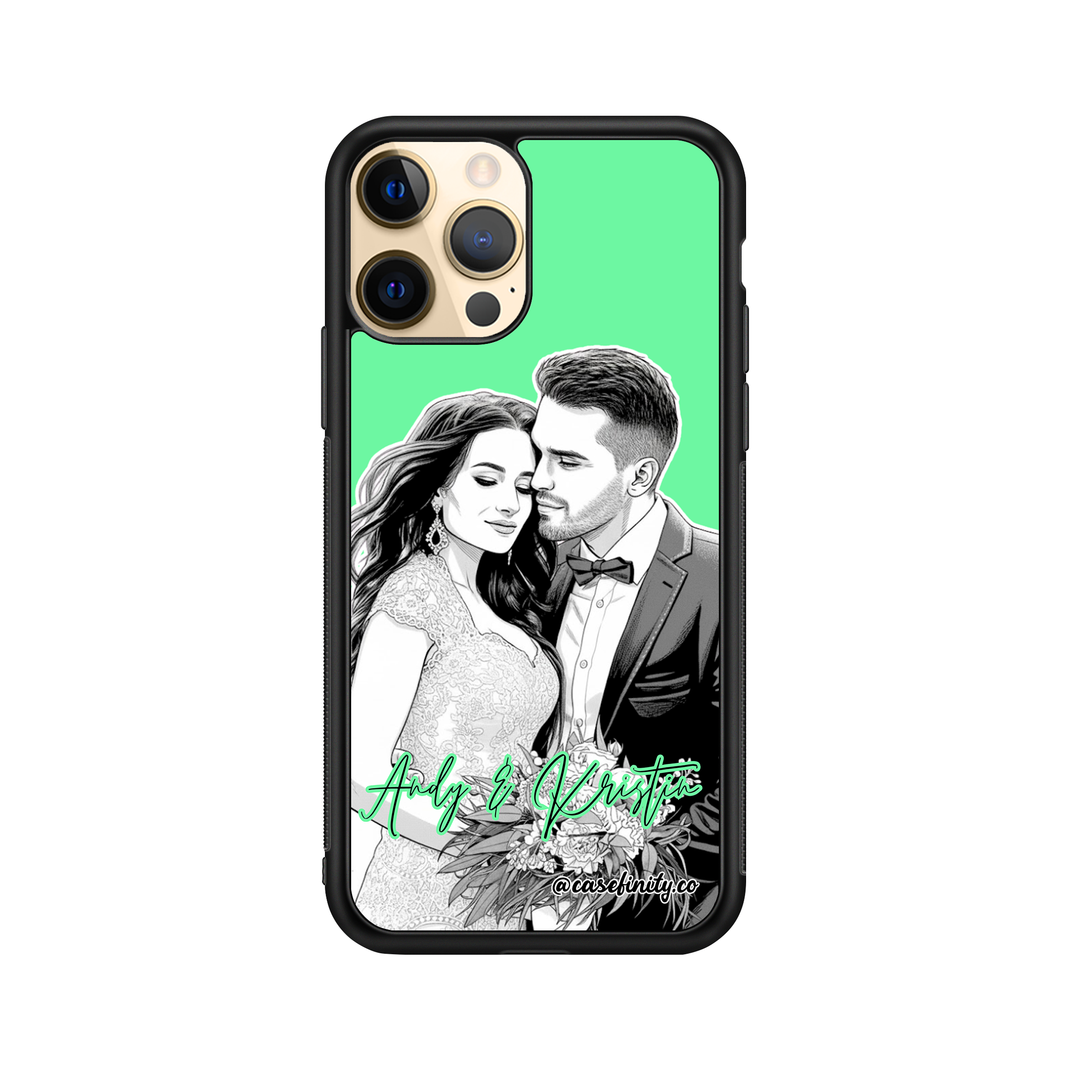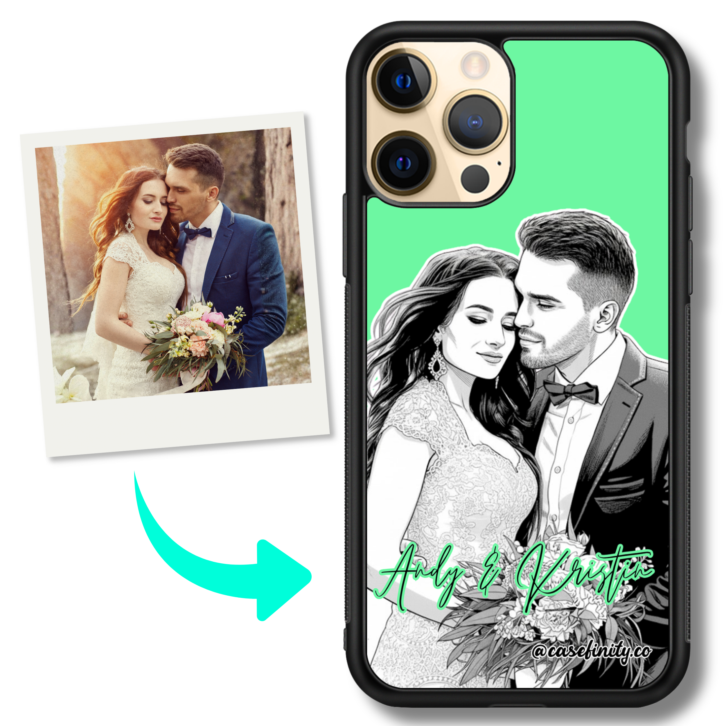 turn your photo into black & white monochrome portrait personalised iPhone case - green
