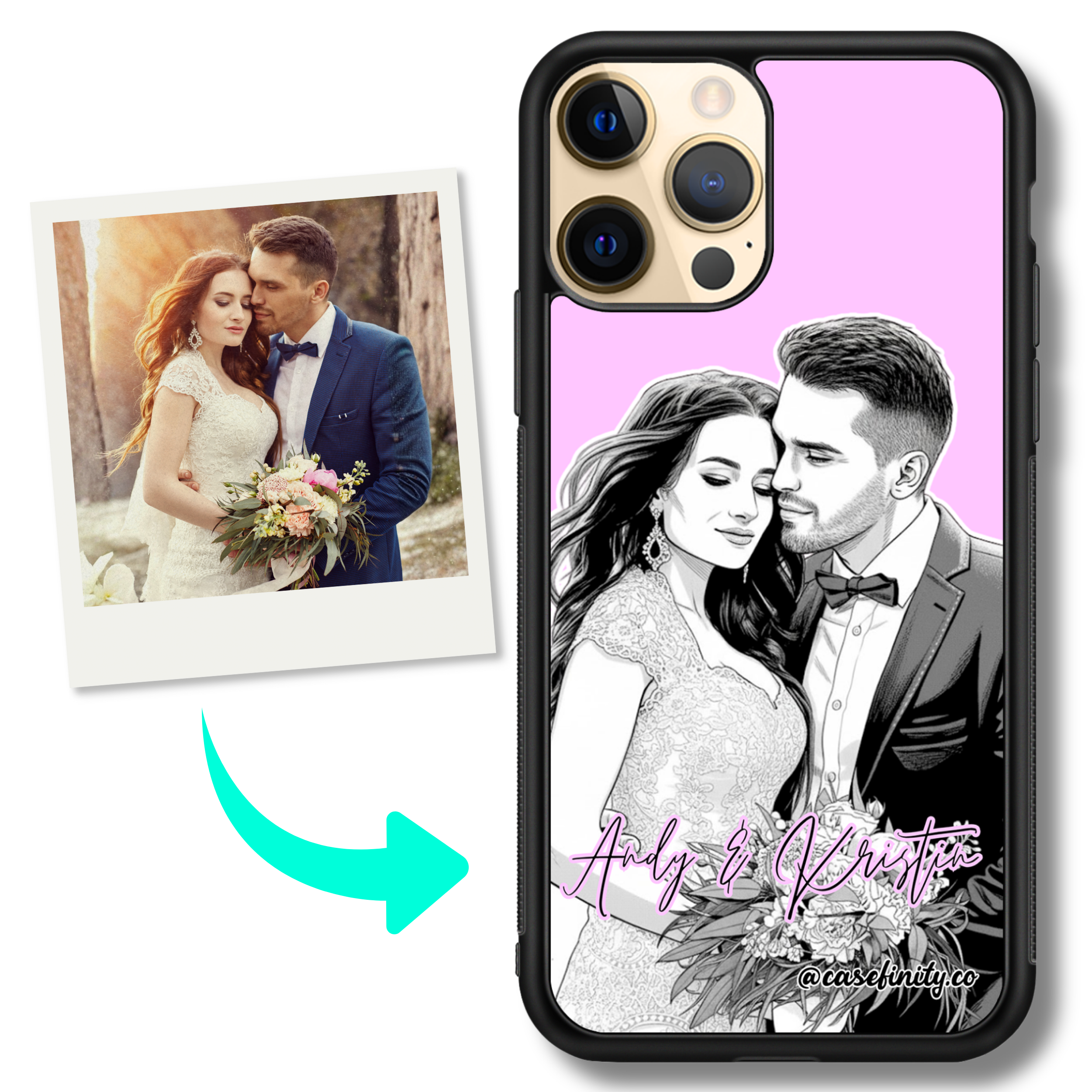 transform your photo into a black and white monochrome portrait printed on a personalised iphone case. custom illustrated for a clean, timeless look and finished on a slim, lightweight impact case, perfect for minimalist gifts and everyday style.