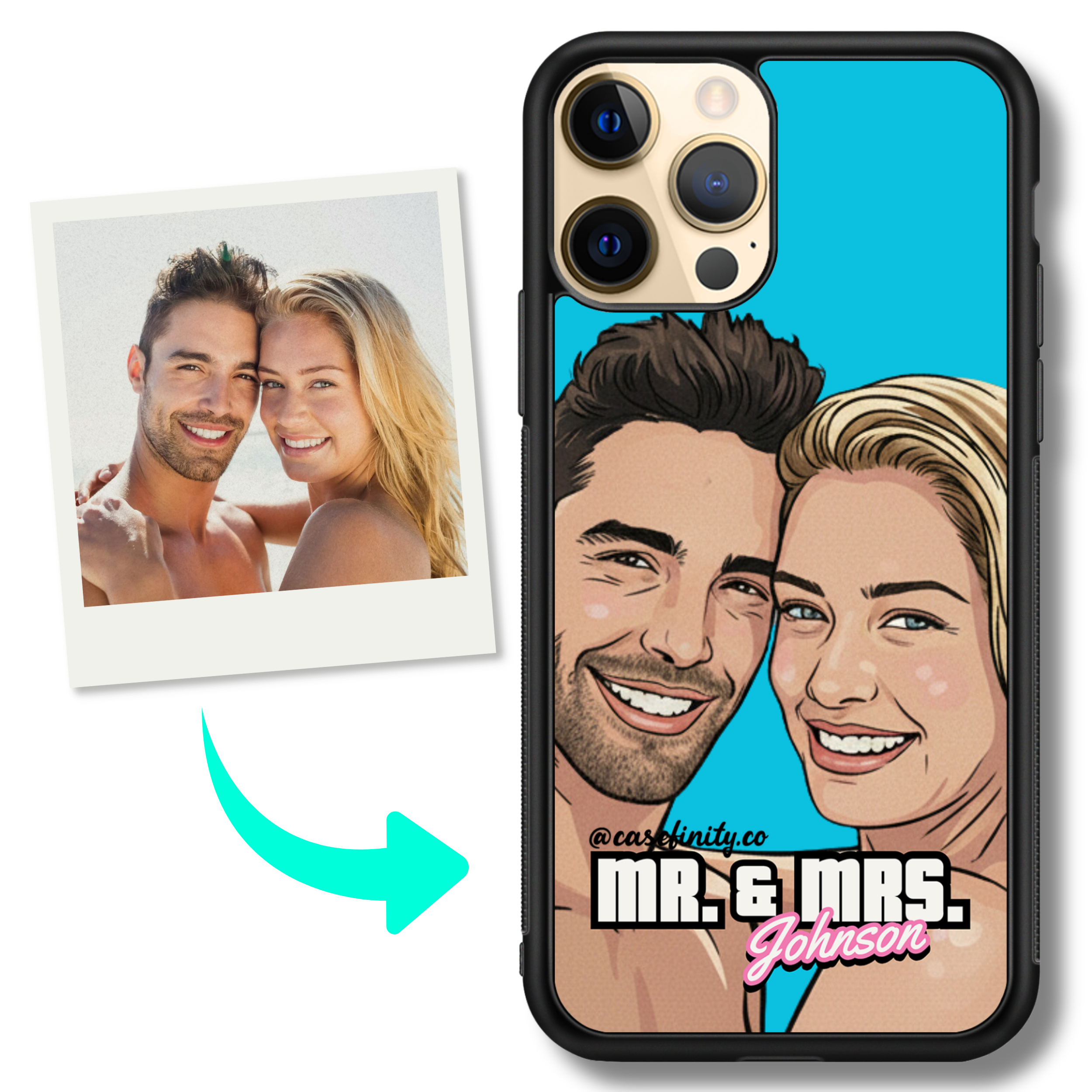 transform your photo into a retro game style vector cartoon portrait printed on a personalised iphone case. custom illustrated from your photo and designed for everyday protection, this slim, lightweight impact case makes a unique gift for gamers, dads, husbands, brothers, and friends.