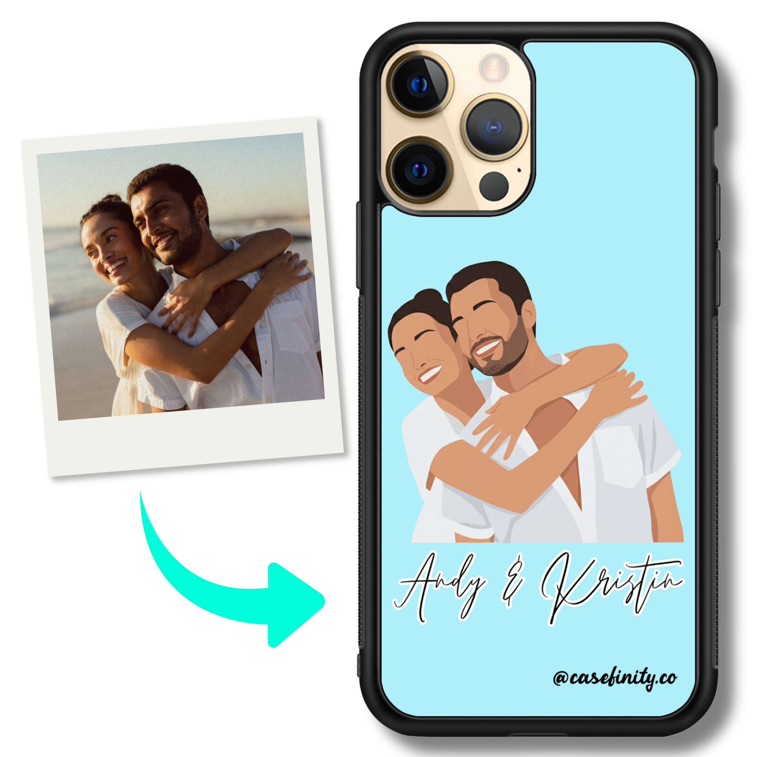 transform your photo into a minimalist faceless portrait printed on a personalised iphone case. custom illustrated from your photo with clean lines and a modern look, finished on a slim, lightweight impact case for everyday protection.