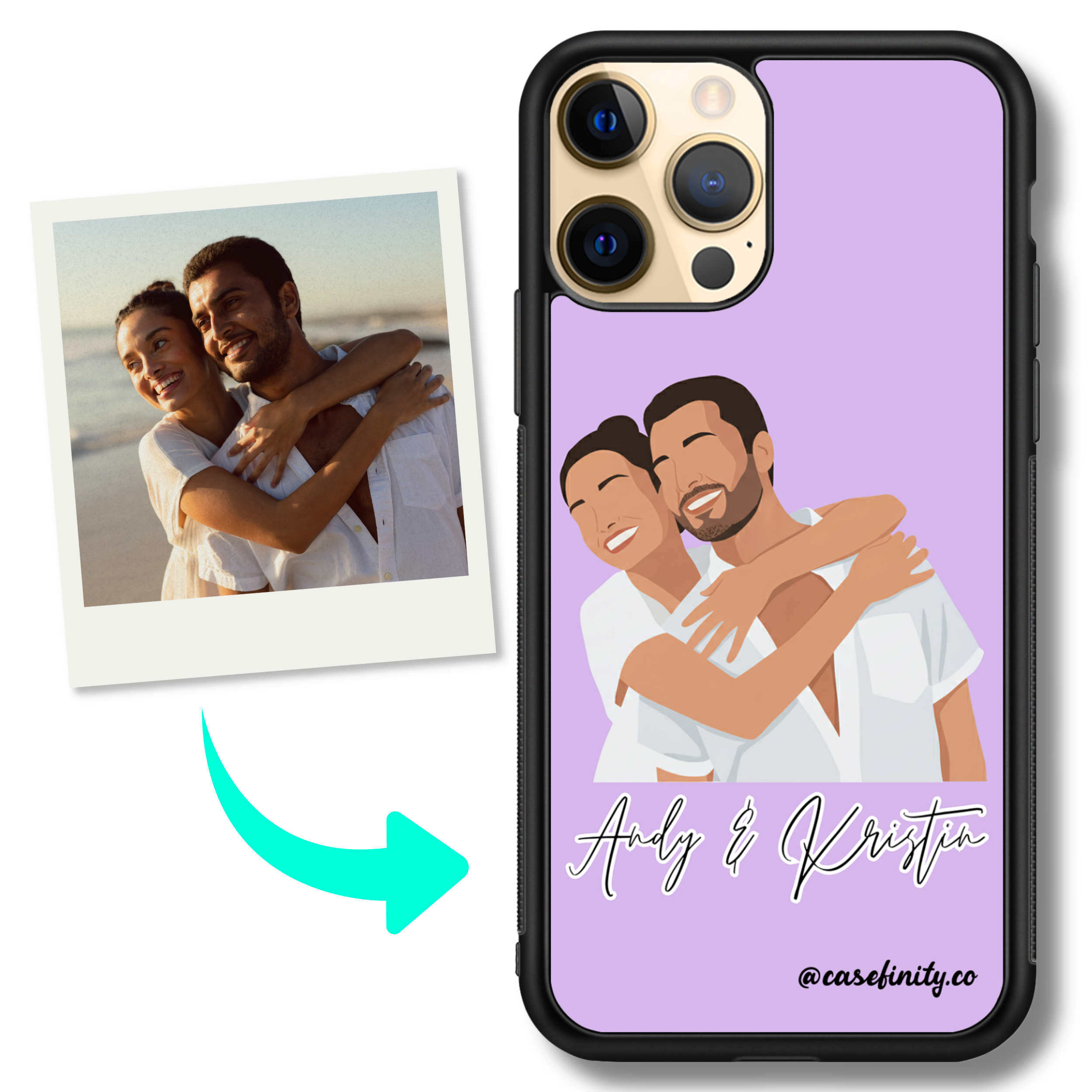 transform your photo into a minimalist faceless portrait printed on a personalised iphone case. custom illustrated from your photo with clean lines and a modern look, finished on a slim, lightweight impact case for everyday protection.