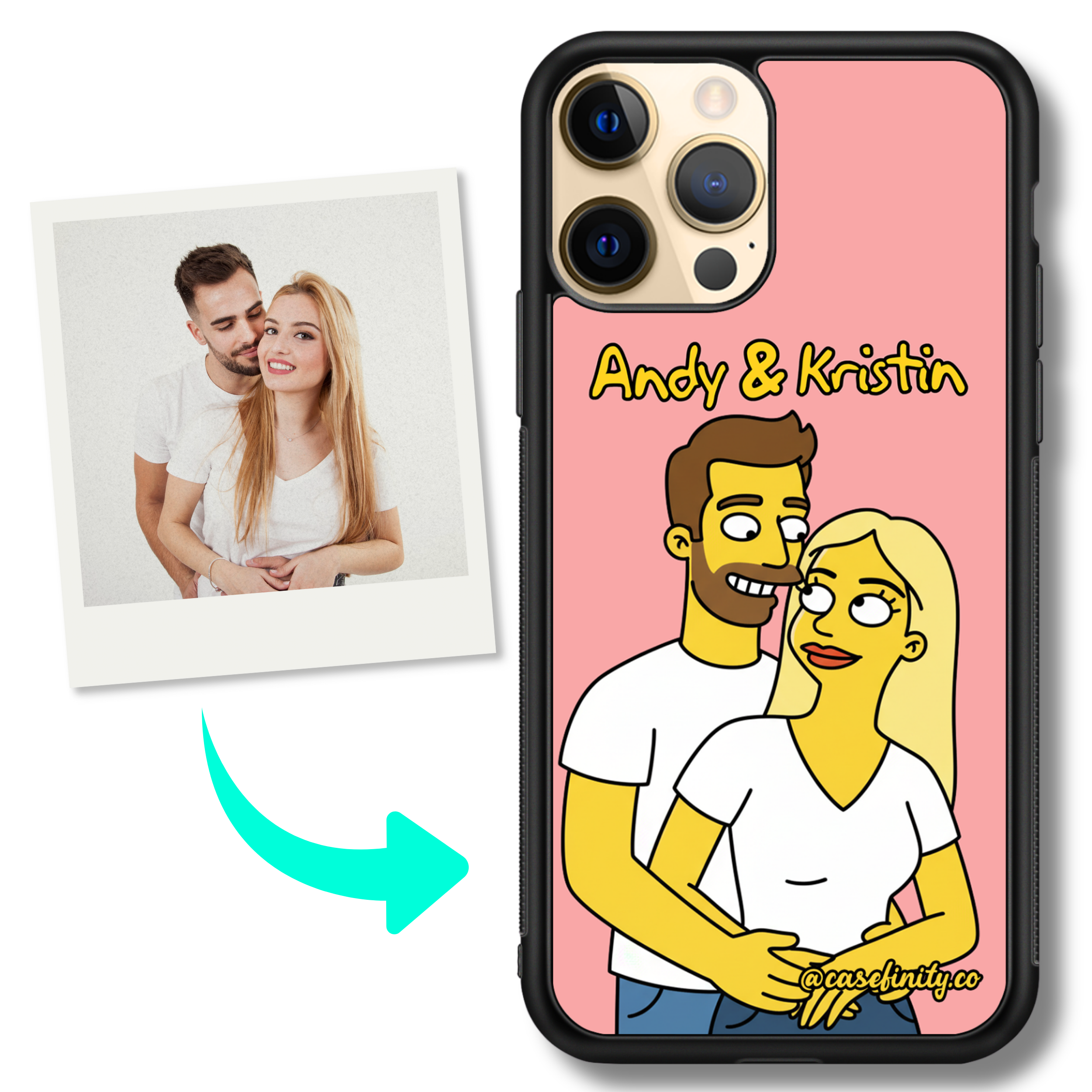 transform your photo into a funny yellow cartoon portrait printed on a personalised iphone case. custom illustrated from your photo and finished on a slim, lightweight impact case, perfect for birthdays, couples, friends, and fun everyday gifts.
