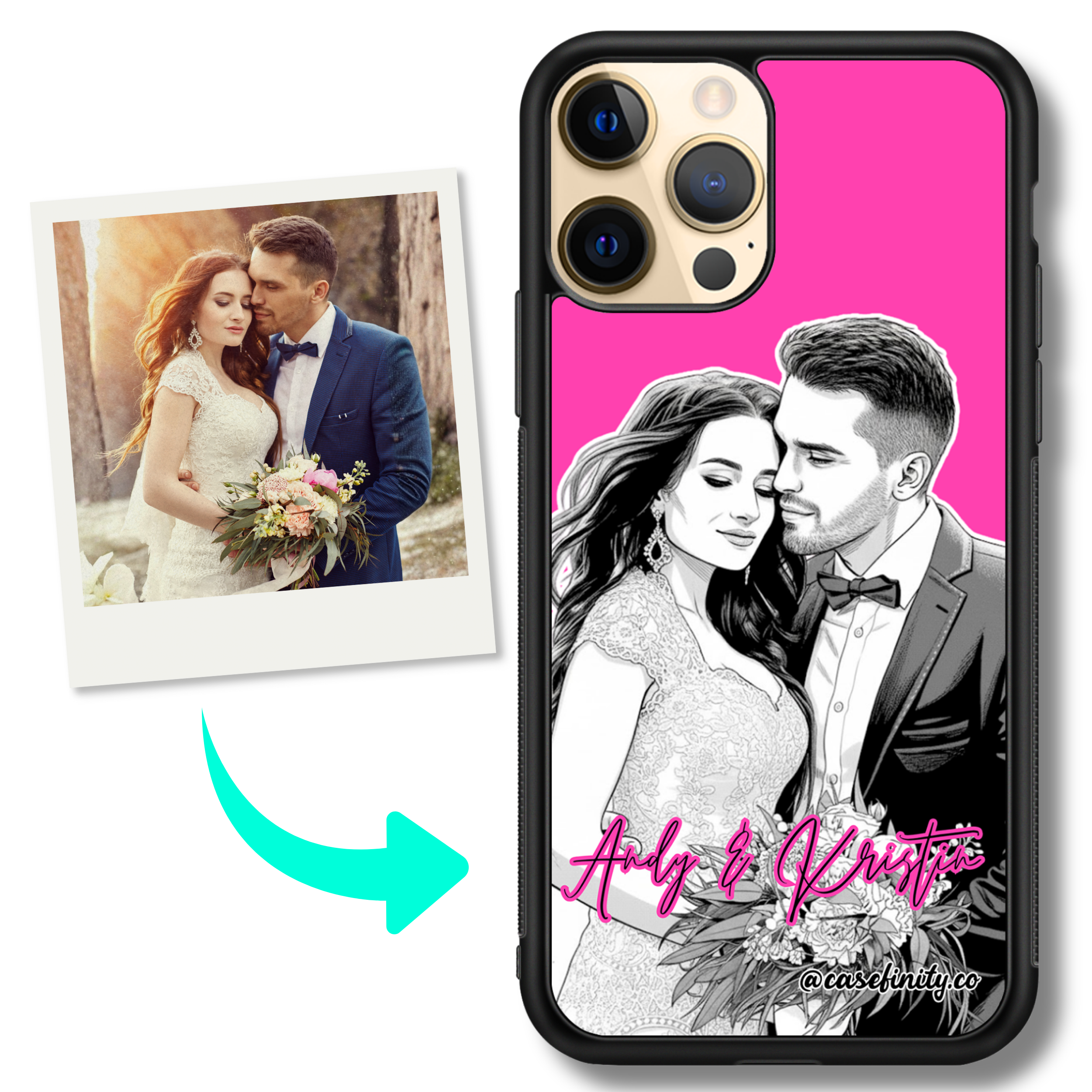 turn your photo into yellow cartoon portrait personalised iPhone case - pink